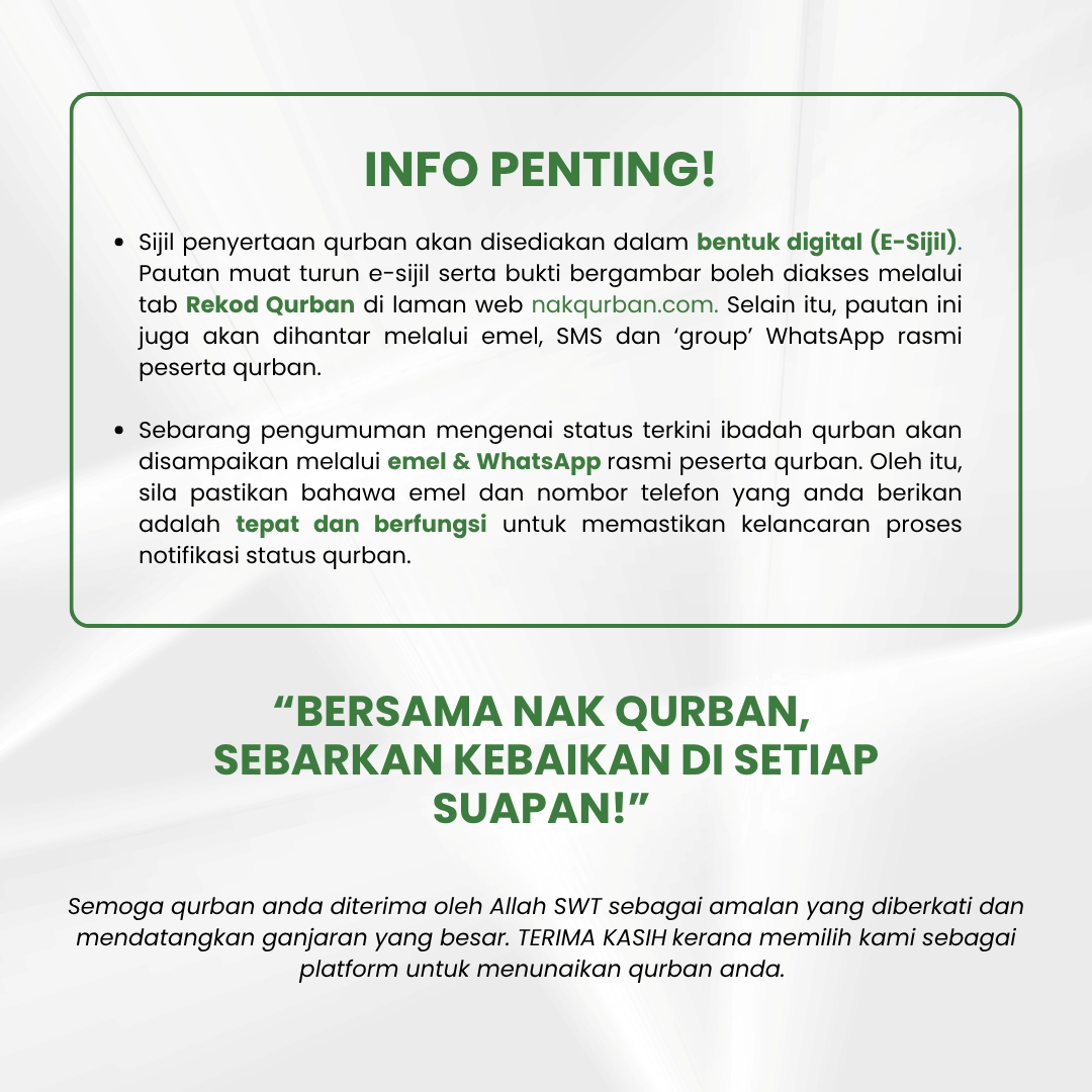 Bukti pelaksanaan qurban & e-sijil penyertaan disediakan.